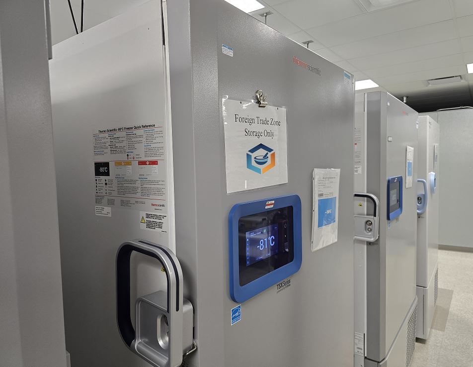 The FTZ is located in the same secure, cGMP-validated facility as the MRIGlobal pharmaceutical repository, stability facility, and biospecimen repository.